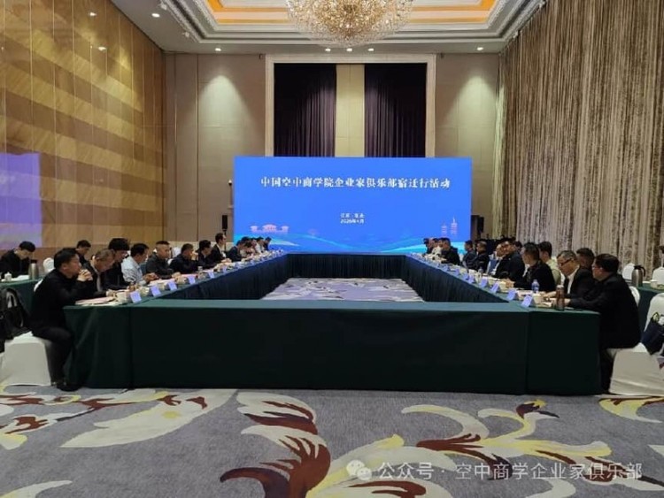 宿迁市政府与中国空中商学院企业家俱乐部工作座谈会于当天下午在宿迁恒力国际大酒店举行。宿迁市副市长李亮、市政府副秘书长王磊,以及市商务局、工信局、科技局、发改委、住建局、交通局、农业农村局、文广旅局、城市管理局、市工商联、市产发集团、宿豫区政府、宿城区政府、经开区管委会等各部门主要负责人和市企业代表参加座谈会。
