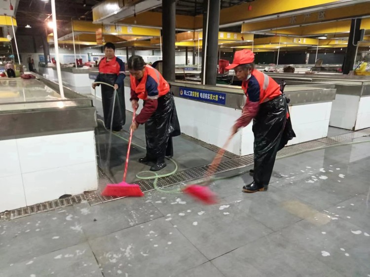 聚焦农贸市场及周边开展市容环境专项整治。加大巡查力度,规范商户经营行为,劝导清理占道经营、流动摊贩,杜绝乱摆乱放、占道扰民现象;对市场进行全面冲洗,清理市场周边散落垃圾,保持市场及周边地面整洁,打造规范、整洁、卫生的农贸市场周边环境,守护市民“菜篮子”周边的洁净与安全。
