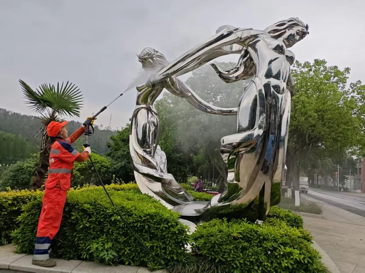 对城区公交站台、休闲座椅、垃圾桶等各类城市家具开展全方位清洗养护,采取“机械+人工”相结合的作业模式,统筹调配高压水车等作业车辆冲洗城市家具,同时组织环卫人员进行精准补位清洁,确保各类城市家具物见本色、焕然一新。