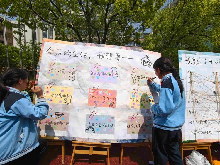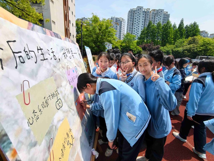 一张张载着憧憬的卡片错落贴在展示板上,在阳光下像一片绽放的心愿花海。有人写“想要一天不用定闹钟,醒了就去湖边喂小鸟”,有人画了堆满零食的沙发和窝在旁边打游戏的自己,也有人认真写下“希望考完试后,和好朋友一起去看海边的日出”。细碎的心愿在展板上静静铺展,每一笔都藏着少年人对松弛生活的向往,那些攒了许久的疲惫,也跟着被温暖的阳光轻轻包裹,慢慢散在了满是花香的空气里。活动结束后,不少同学带着集满印章的明信片兑换了奖品,也把轻松舒展的心情带回了日常的学习生活里。