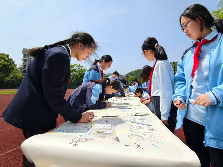 2026年4月24日中午,杭州市清河实验学校在操场举办了一场学生艺术疗愈活动。本次活动由清河实验学校与浙江传媒学院志愿者共同策划组织,以游园会的形式同时开展三个活动环节,帮助学生舒缓情绪、释放压力。