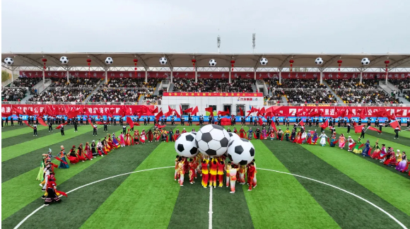伴随着雄壮的国歌声,五星红旗冉冉升起,全体人员面向国旗肃立,高唱国歌。开幕式上,李新斌代表市委、市人民政府向全体运动员、裁判员、教练员表示诚挚的欢迎。他说,作为丝绸之路的足球发源地,阿图什深入挖掘百年依克萨克村足球队战胜英国足球队的事迹,在长期的实践中形成了“开放包容、团结协作、顽强拼搏、勇争一流”的阿图什足球理念,开创了阿图什市足球产业市场化改革发展的新局面,激发了全市各族群众对足球热情的“澎湃势能”。近年来,在自治区、自治州党委的关心重视下,在全市各族干部群众的大力支持下,阿图什坚持以赛提质、以赛惠民、以赛兴城,各支足球队在全国、全疆各大赛事中贡献力量,女子足球建设蓬勃发展,足球体育设施不断完善,阿图什足球事业在一场场赛事中实现新突破,足球产业发展正朝着多样化大步跃进,谱写了民族团结进步的崭新篇章!让我们共同努力,让此次足球盛会,赛出新水平、实现新跨越。