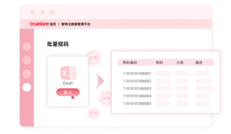 物料数据的协同性差、复用性低,很大程度上源于缺乏物料编码或编码不统一。智物方案提供的赋码技术,能够根据企业业务需求,灵活选择物料编码规则,为每个物料数据赋予唯一的身份编码。这一技术不仅提高了物料数据统计的精准性,还深化了数据洞察,充分发挥了物料数据应用的深度和广度。