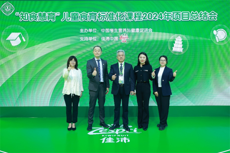 在“知食慧育”儿童食育标准化课程2024年项目总结会环节,中国学生营养与健康促进会会长陈永祥,“知食慧育”儿童食育标准化项目负责人吴晶晶,新西兰佳沛首席市场营销创新及可持续发展官Jiunn Shih(史天骏),佳沛大中华区市场部副总裁李美娟,“知食慧育”儿童食育标准化课程项目参与者代表程辉辉等嘉宾出席并见证此次活动。