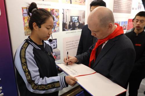 华夏教育集团太阳谷华夏学校李显峰校长陪同参观。在“中俄友谊长存”展厅,李贤德看到学生于2024年5月和8月分别向普京和米舒斯京致信的信件,驻足良久并诚挚地表达了对学生们致信俄罗斯的感谢。“中俄友谊长存”展厅分为三部分:世代友好,行在当下;历史缅怀,友谊传承;文化交融,互建共享。李贤德在《华夏教育集团·太阳谷华夏学校》画册上送上了真挚的祝福:祝太阳谷华夏学校繁荣发展,学生学习成功。