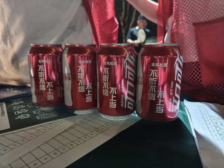 为进一步浓厚辖区内防诈骗宣传氛围,社区平安志愿小队在日常走访及开展各类活动的同时,还会在小区人流密集的场所如篮球场等,通过唠嗑、聊家常的方式随时宣传,反诈知识更加深入人心;在元宵节、端午节等重要节气活动中,社区还推出“防诈骗灯谜”、“反诈香囊”等趣味互动环节,以群众喜闻乐见的形式,让大家既感受节日氛围又能增长反诈知识;此外,社区集思广益,特别创新定制了一批印有新颖有趣反诈标语的可乐,结合各类活动如“夏季送清凉”等为居民们送上反诈饮品,清新逗趣的内容吸引了不少人的眼球,甜蜜中满是关心与温暖。居民们纷纷表示“有趣又有意义,以后也要多多举办、多多参与”!