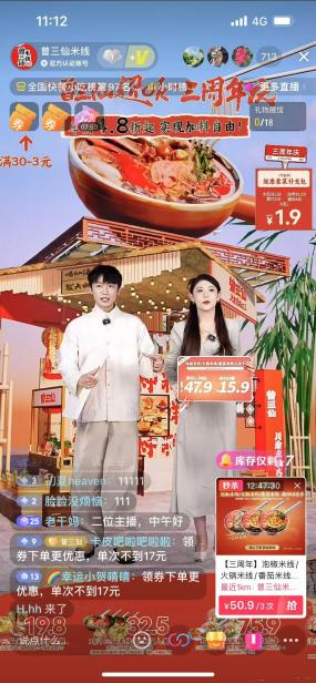 随着天气逐渐变凉,一碗热腾腾的米线更能温暖身心,10月24日,喜欢嗦粉的用户涌入曾三仙米线直播间,疯狂抢购人气套餐、加料单品等。