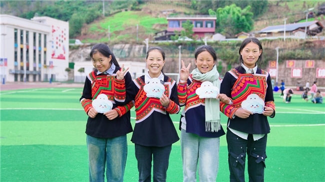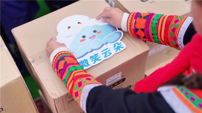 支教老师告诉彩云邮差,山里女孩刻苦,而且尤其珍惜学习的机会,所以能通过考核进入索玛班的女孩比男孩多得多。她们肩上的书包,身上保暖的外套,脚上的鞋袜,都是社会各界爱心人士予以关怀的物资,而这个冬天,“微笑云朵”全国公益援助行动驰援的卫生巾也来到了身边,她们格外怀有感念之心,早早在操场列好队伍,期待和彩云邮差的相见。