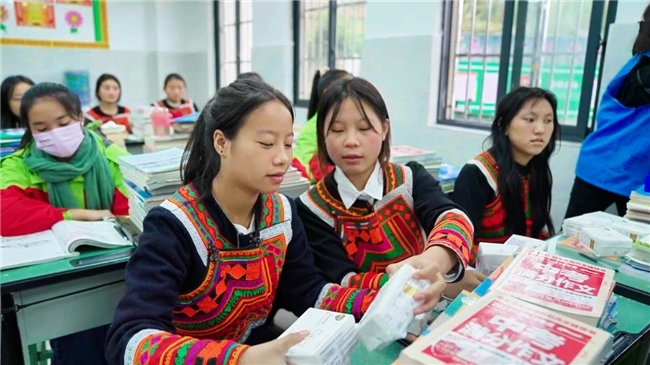 牛牛坝中学现有适龄女孩约200人,按“微笑云朵”援助标准,大树云集团为女孩们提供14400包优质卫生巾,先行发放部分之后,将剩余物资全部存放至索玛超市,此后女孩们无需使用索玛积分即可随到随领,签名确认,最终可领满每人72包。
