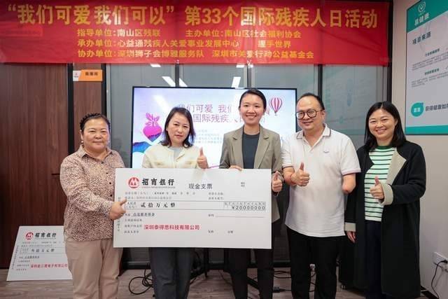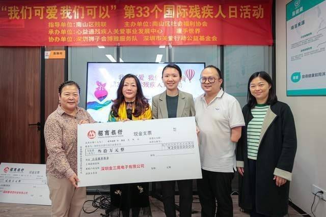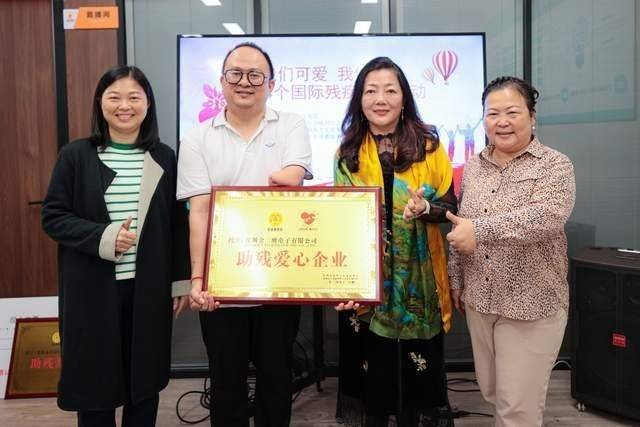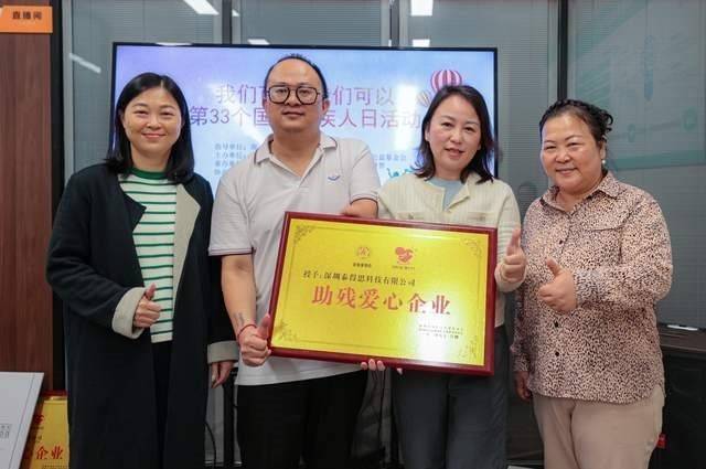 同时,主办方还为泰得思科技有限公司和金三鹰电子有限公司颁发了“爱心企业”牌子,以表彰他们的慷慨善举。现场,深圳市富乔米业有限公司也为残疾朋友们捐赠了大米,表达了他们对残疾人的深切关爱与支持。