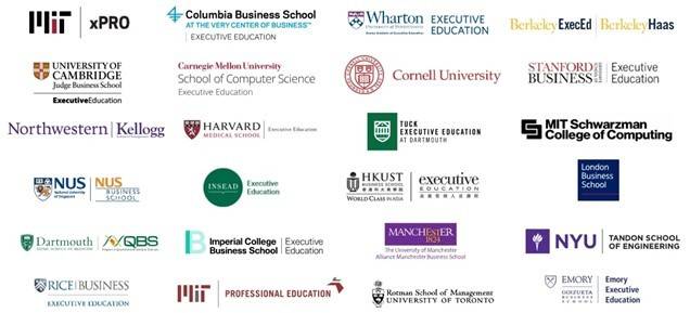 截至目前,我们与麻省理工学院、沃顿商学院、哥伦比亚大学、哈佛大学、剑桥大学、复旦大学、欧洲工商管理学院、加州大学伯克利分校等多所大学展开了合作。我们独特的教育模式,融合了先进的科技、课程创新、以及来自知名大学资深名师的教授和辅导,已为80多个国家和地区的超过35万名学员提供了线上和线下未来能力培训和教育。