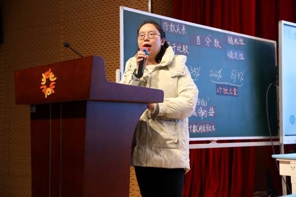 第一节课由花园实小陈莉梅老师主讲《认识百分数》。陈老师教态优雅,语言亲切,从生活实例入手,深入浅出地引导学生理解百分数概念。她通过具体例子将抽象知识与日常生活相联系,让学生轻松掌握百分数相关知识,并激发了学生的学习热情。课后,花园实小的吴彩云老师进行了细致点评,从多方面解析了百分数教学的重要性,并为后续教学提供了宝贵建议。
