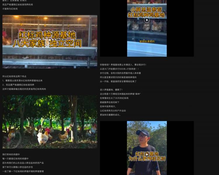 “我们曾经接待过远方好物团队。”谢先生回忆,2023年11月,远方好物冻品总监“小胖”带队来访,表示希望能建立合作,共同销售“红标鸡”。谢先生说,他们就带着远方好物团队参观了“红标鸡”育种、饲养基地和生产加工基地等。期间该团队拍摄了大量照片、视频素材,称将用于双方合作后对“红标”鸡的推广和销售。