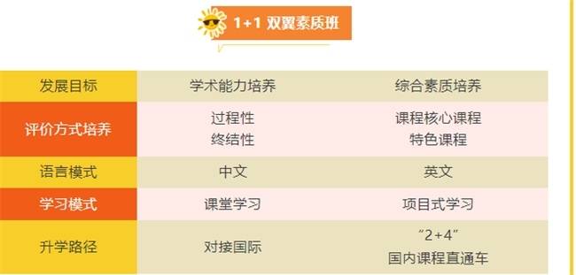 小学“1+1双翼素质班”、初中“2+4贯通素质班”的出现,将“国际课程发展全球视野,国内课程培养核心素养”融合并行,实现“艺体项目挖掘天赋,科创特色一脉相承”,个性化与全面发展并重。