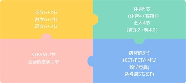 强化国家课程根基的同时,加持强化国家白名单,扩充竞赛平台,让学生们在小学阶段就能够为初一做好准备,无论是选择国际还是国内教育轨道,都能自由驰骋,满足不同家庭的个性化需求,激发学生潜能,让未来如彩虹般绚烂多彩。