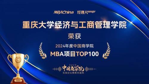 盛典现场,MBAChina和《经理人》杂志重磅发布了“2024年度中国商学院MBA项目TOP100”等榜单。重庆大学经济与工商管理学院以卓越的综合实力荣耀上榜,荣获“2024年度中国商学院MBA项目TOP100”第十名!重庆大学经济与工商管理学院黄河院长凭借在学院管理、教育创新、学术贡献及行业领导力等方面的卓越成就与深远影响,荣获“2024年度中国商学院杰出院长奖”!重庆大学经济与工商管理学院刘辛荣获“2024年度中国商学院卓越运营奖”!